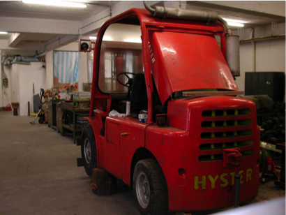 Der Stapler hebt so ziemlich alles weg, was im weg steht, Trecker, anderer Stapler, usw.